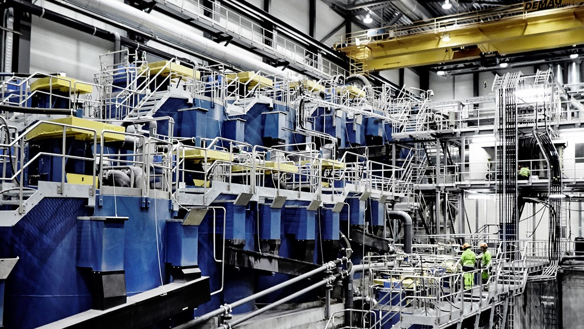 The flotation cells play a central part in the extraction of ore. In the flotation process, the ore is concentrated and valuable minerals are separated from the waste rock in a surface-chemical process, where air and small amounts of chemicals cause the mineral particles to float up to the surface of the flotation cell, where they can be removed.
